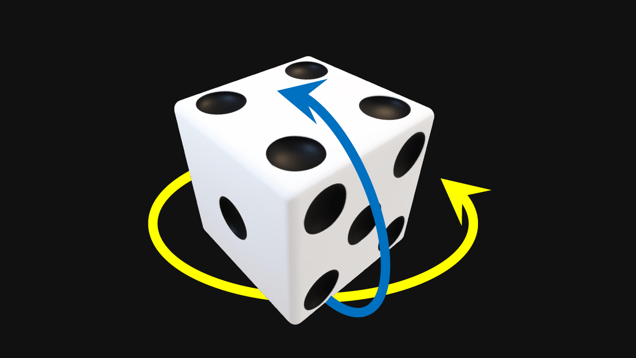 Der Würfel rotiert um 2 Achsen gleichzeitig, du weißt jedoch nicht wie lange und wie oft. Schaffst du es, alle 6 Seiten richtig zuzuordnen?